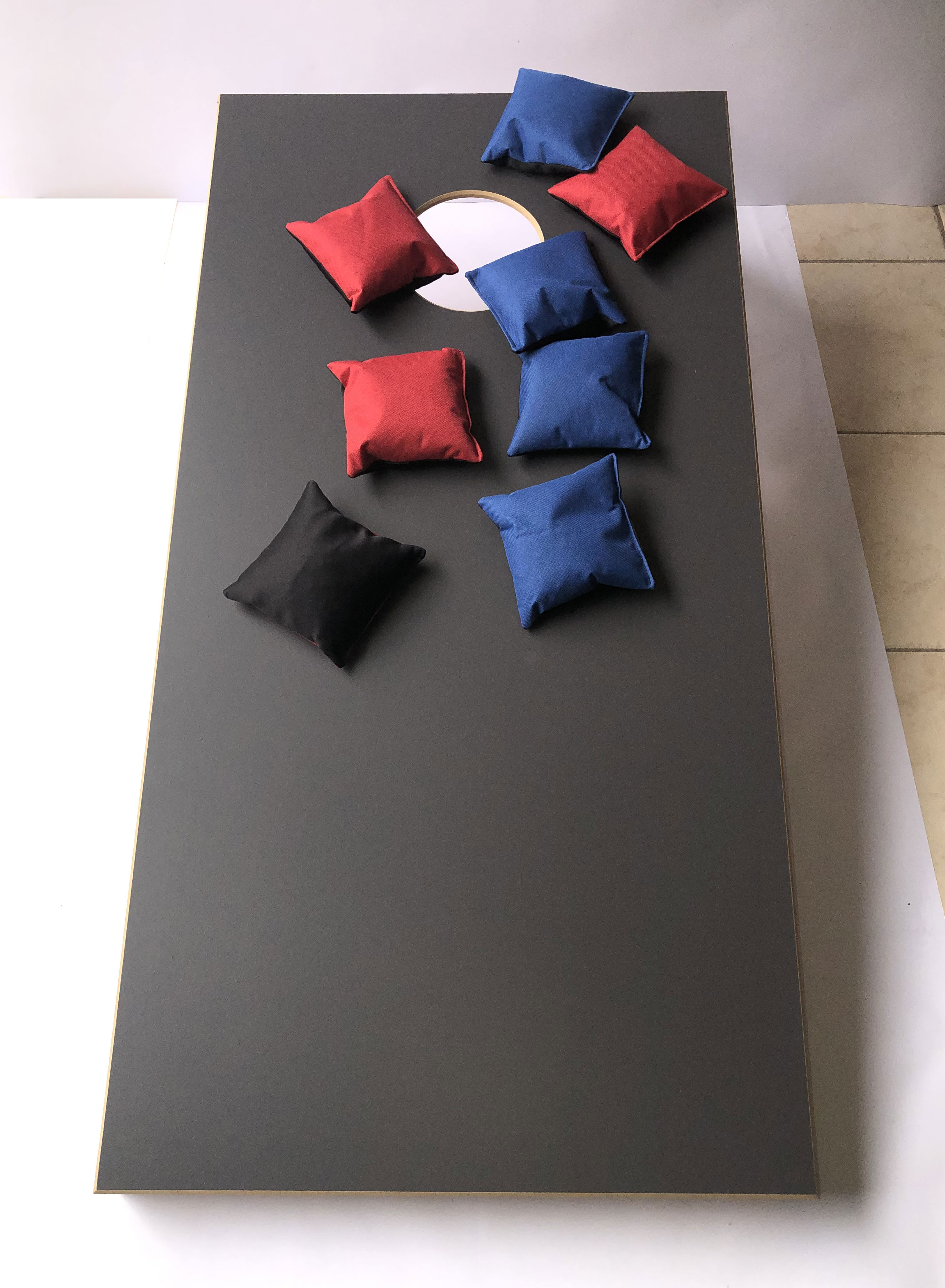 Le principe est simple : deux équipes, composées de 1 ou 2 joueurs chacune, s’affrontent pour lancer des sacs de maïs (ou de sable) dans un trou situé sur une planche en bois inclinée, appelée la « planche de Cornhole », positionnée à environ 8 mètres de distance.