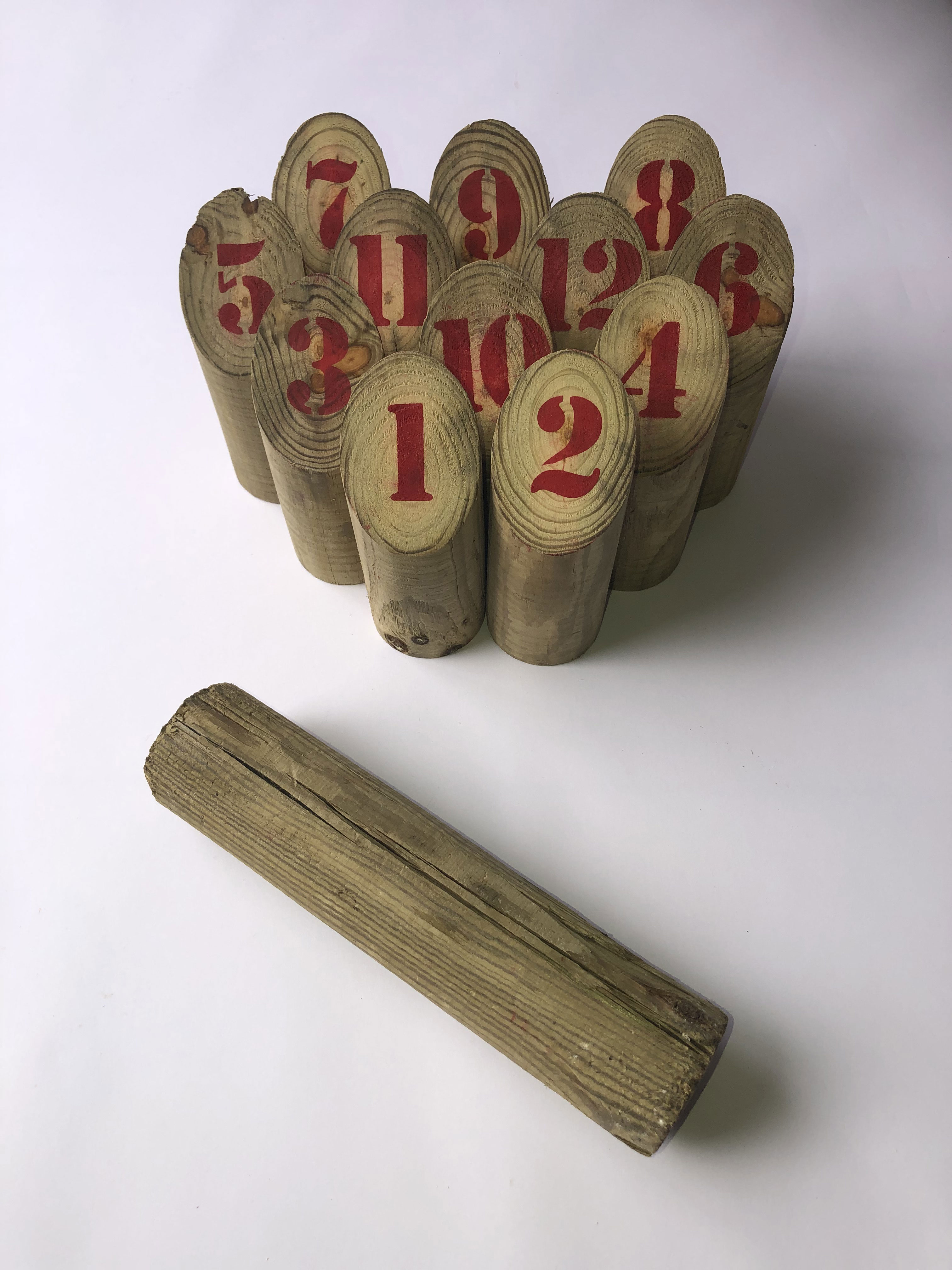 - Début de la partie : Les quilles en bois sont disposées en formation serrée à environ 3 à 4 mètres des joueurs. Chaque joueur, à son tour, lance un bâton en bois (appelé le Mölkky) pour faire tomber les quilles.