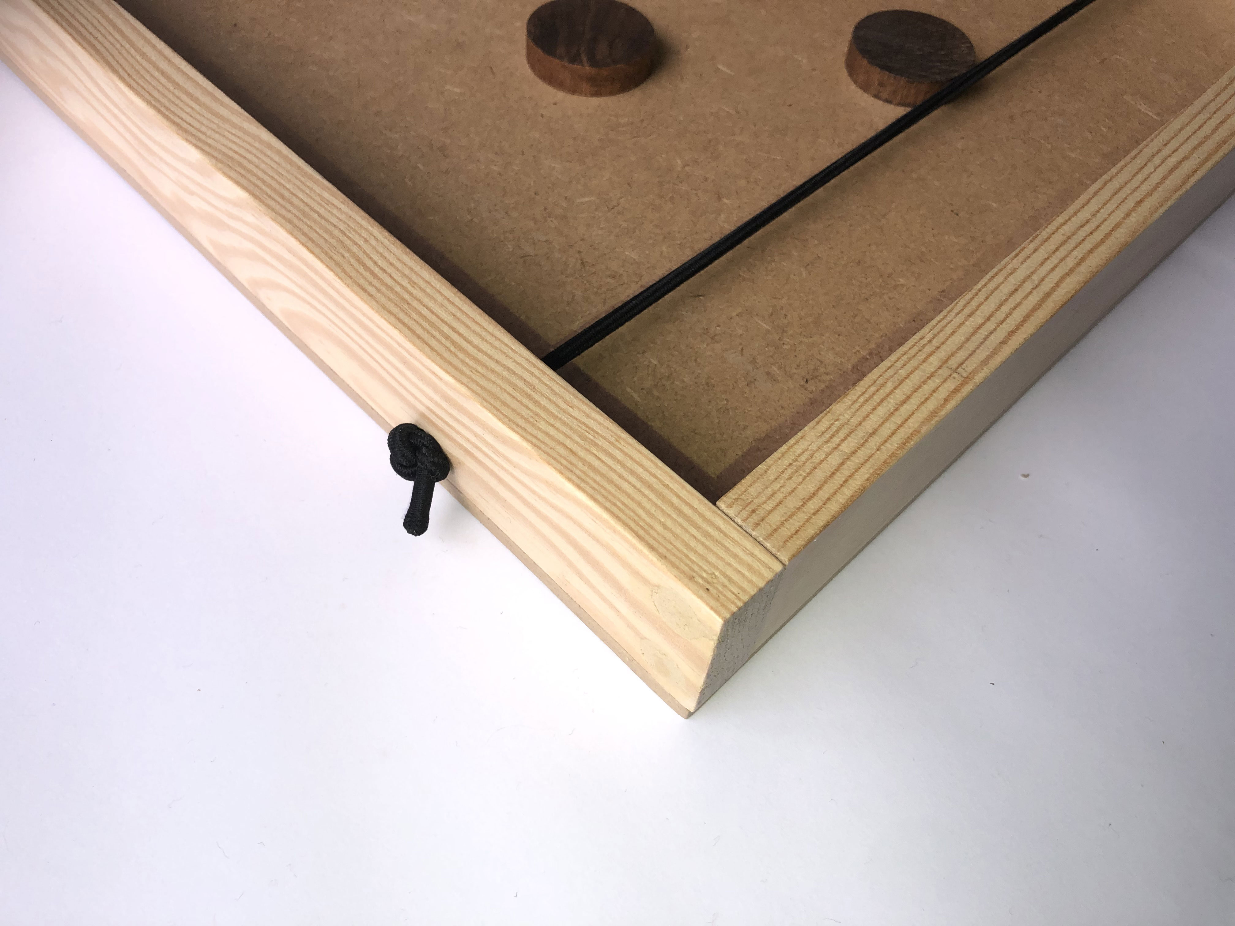 Le jeu se joue à deux sur un plateau divisé en deux parties, avec une petite ouverture (le « trou de passe ») au milieu. Chaque joueur dispose de 6 palets en bois, placés sur sa moitié du plateau. L’objectif est simple : être le premier à envoyer tous ses palets dans le camp adverse en les propulsant à travers l’ouverture centrale, à l'aide d'un élastique tendu sur le bord de son côté du plateau.